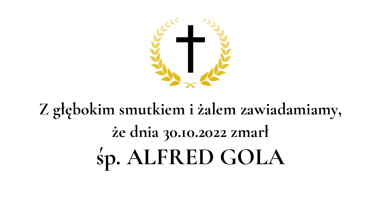 Data pogrzebu: 04.11.2022 Msza Święta: 04.11.2022 o godz. 10:00 Kościół p.w. św. Jana i Pawła Męczenników Katowice, ul. Chorzowska Wyprowadzenie do grobu o godz. 10:45 Cmentarz: cmentarz parafialny ul. Bracka Katowice