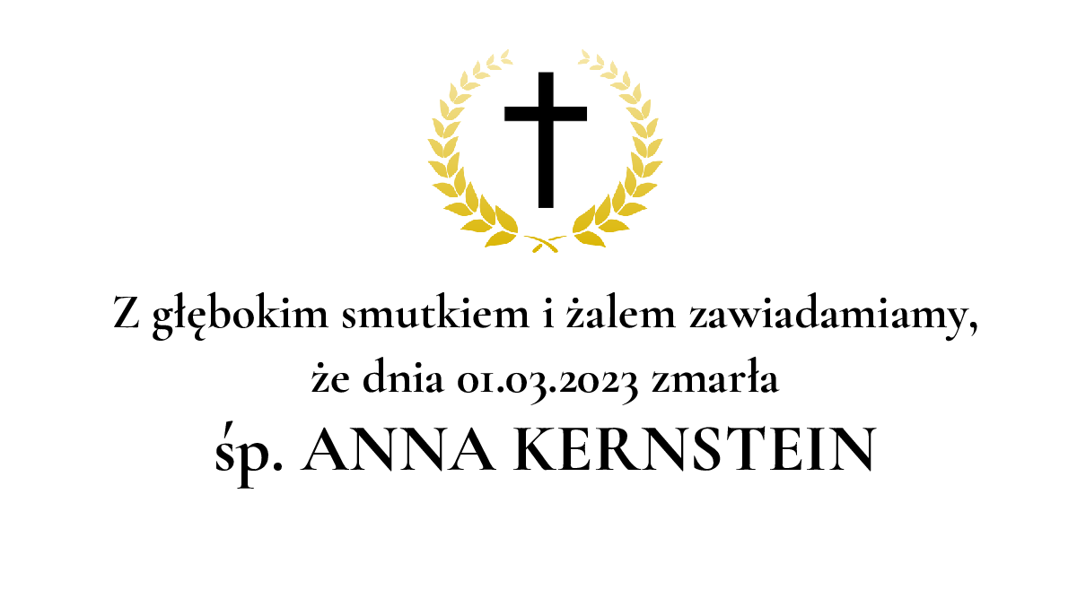 Data pogrzebu: 03.03.2023 Msza Święta: 03.03.2023 o godz. 09:00 Kościół św. Stanisława Kostki w Katowicach-Giszowc Katowice, ul. Górniczego Stanu 22 Wyprowadzenie do grobu o godz. 09:45 Cmentarz: Cmentarz parafialny w Katowicach-Giszowcu Katowice, ul. Górniczego Stanu