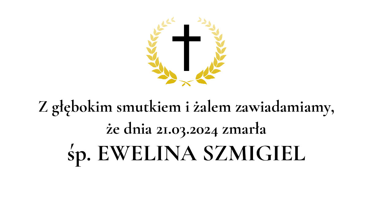Data pogrzebu: 23.03.2024 Msza Święta: 23.03.2024 o godz. 11:00 kościół p.w.Najświętszych Imion Jezusa i Maryi Katowice, ul. Przyklinga 12 Wyprowadzenie do grobu o godz. 12:00 Cmentarz: Cmentarz komunalny Katowice-Panewniki Katowice, ul. Panewnicka 45