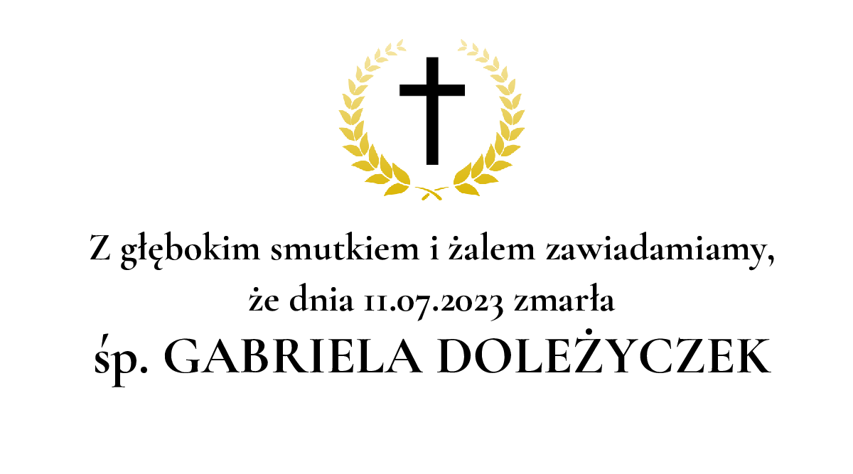 Data pogrzebu: 14.07.2023 Msza Święta: 14.07.2023 o godz. 08:45 Kościół św. Jadwigi w Katowicach-Szopienicach Katowice, ul. Plac Powstańców Śląskich 3 Wyprowadzenie do grobu o godz. 09:30 Cmentarz: cmentarz parafialny w Katowicach-Szopienicach Katowice, ul. Brynicy