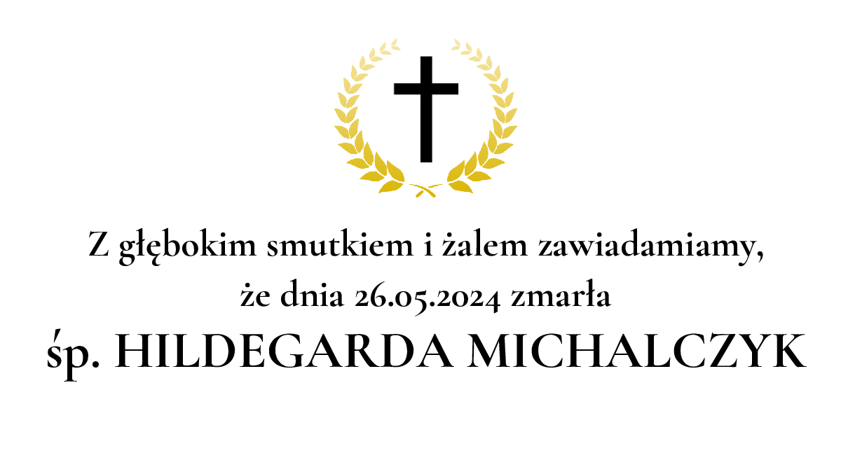 Data pogrzebu: 01.06.2024 Msza Święta: 01.06.2024 o godz. 09:00 Kościół NSPJ w Katowicach-Murckach Katowice, ul. Solskiego 2 Wyprowadzenie do grobu o godz. 09:45 Cmentarz: cmentarz komunalny przy ul. Kołodzieja Katowice, ul. Kołodzieja