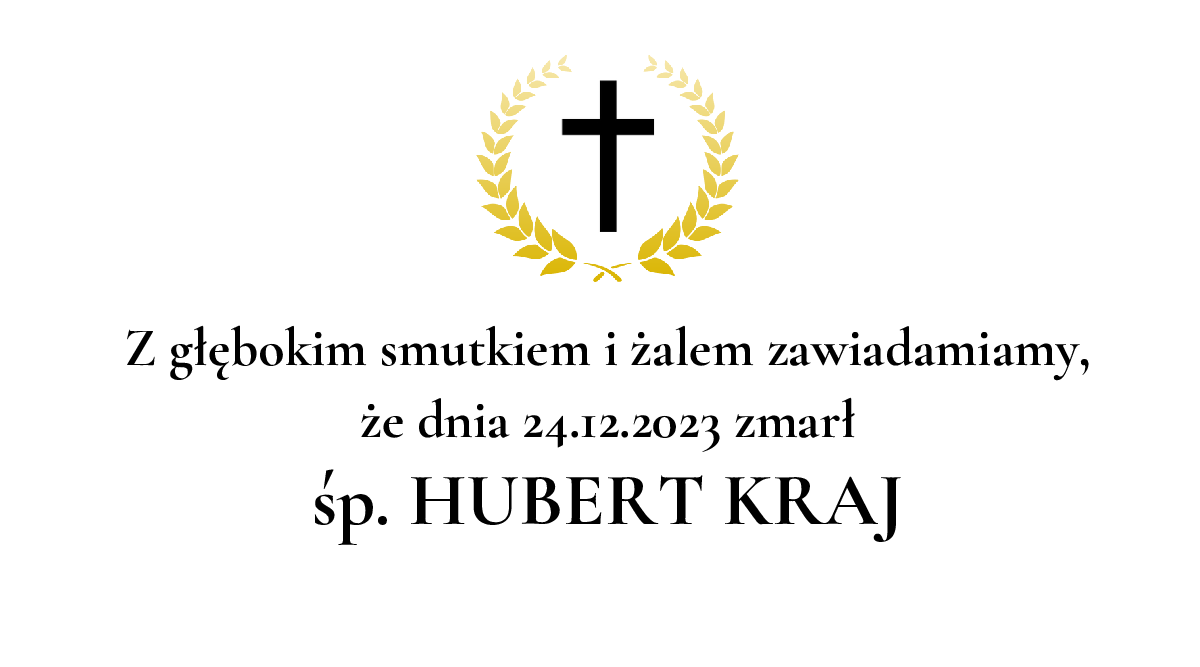 Data pogrzebu: 30.12.2023 Msza Święta: 30.12.2023 o godz. 12:00 Kościół św. S. Kostki w Katowicach-Giszowcu Katowice, ul. Górniczego Stanu 22 Wyprowadzenie do grobu o godz. 12:45 Cmentarz: Cmentarz parafialny w Katowicach-Giszowcu Katowice, ul. Górniczego Stanu