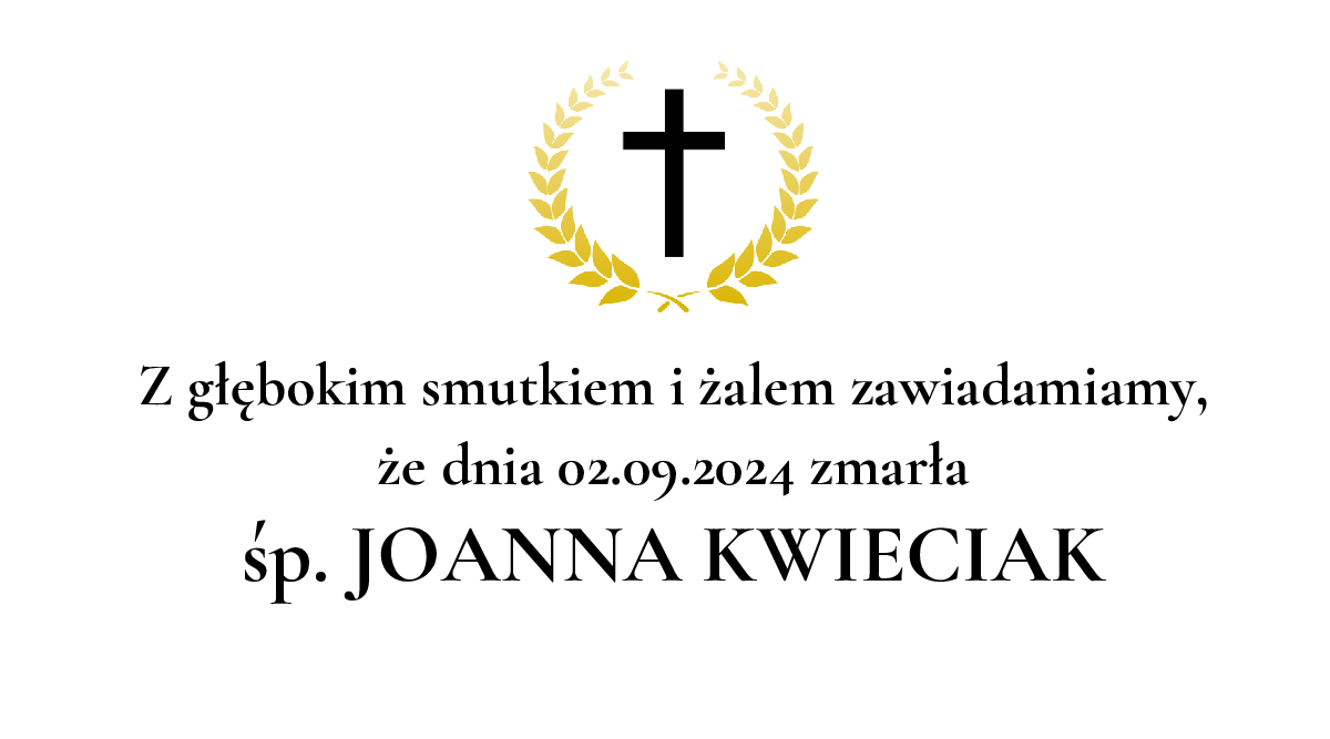 Data pogrzebu: 06.09.2024 Msza Święta: 06.09.2024 o godz. 09:00 Kościół pw.św. Anny w Katowicach-Janowie Katowice, ul. Plac Wyzwolenia Wyprowadzenie do grobu o godz. 09:45 Cmentarz: Cmentarz parafialny w Katowicach-Janowie Katowice, ul. Cmentarna