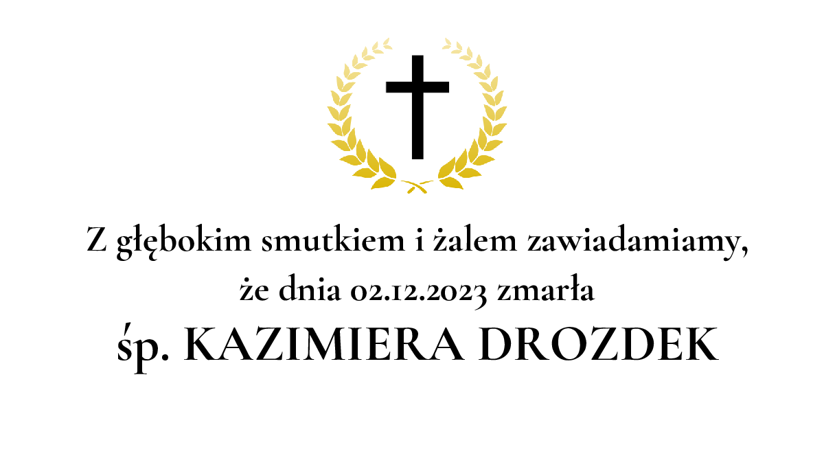 Data pogrzebu: 06.12.2023 Msza Święta: 06.12.2023 o godz. 11:00 Kościół pw.św. Anny w Katowicach-Janowie Katowice, ul. Plac Wyzwolenia Wyprowadzenie do grobu o godz. 11:45 Cmentarz: Cmentarz parafialny w Katowicach-Janowie Katowice, ul. Cmentarna