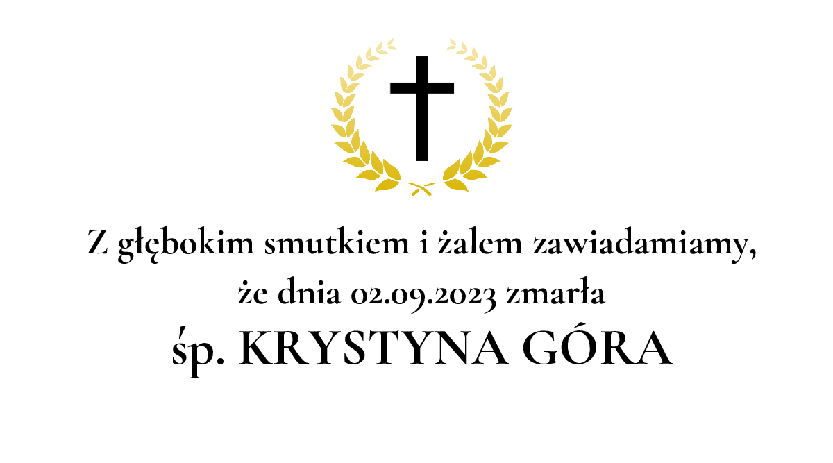Data pogrzebu: 07.09.2023 Msza Święta: 07.09.2023 o godz. 09:00 Kościół św. Jadwigi w Katowicach-Szopienicach Katowice, ul. Plac Powstańców Śląskich 3 Wyprowadzenie do grobu o godz. 09:45 Cmentarz: cmentarz parafialny w Katowicach-Szopienicach Katowice, ul. Brynicy