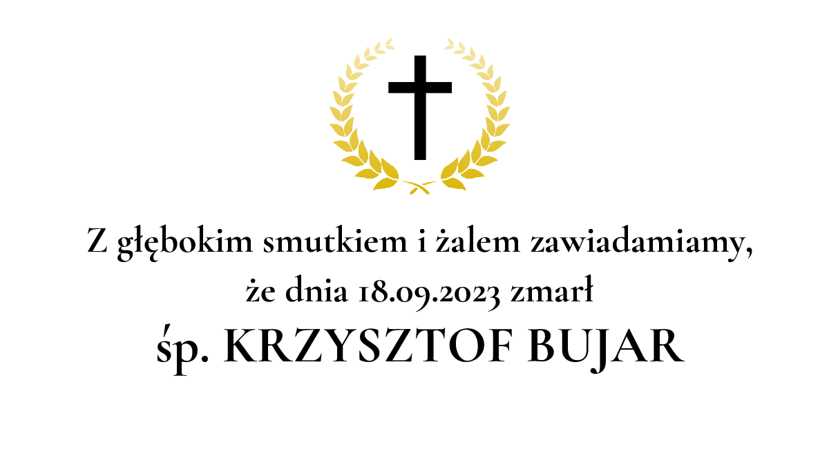 Data pogrzebu: 21.09.2023 Msza Święta: 21.09.2023 o godz. 13:00 Kościół pw.św. Barbary w Katowicach-Giszowcu Katowice, ul. Młodzieżowa 10 Wyprowadzenie do grobu o godz. 13:45 Cmentarz: cmentarz parafialny w Katowicach-Szopienicach Katowice, ul. Brynicy