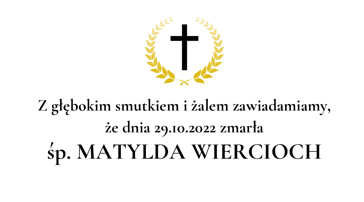 Data pogrzebu: 03.11.2022 Msza Święta: 03.11.2022 o godz. 09:00 Kościół pw. św.Antoniego w Katowicach-Dąbrówce Małej Katowice, ul. Aleja Niepodległości 4 Wyprowadzenie do grobu o godz. 09:45 Cmentarz: Cmentarz parafialny w Katowicach-Dąbrówce Małej Katowice, ul. Le Ronda