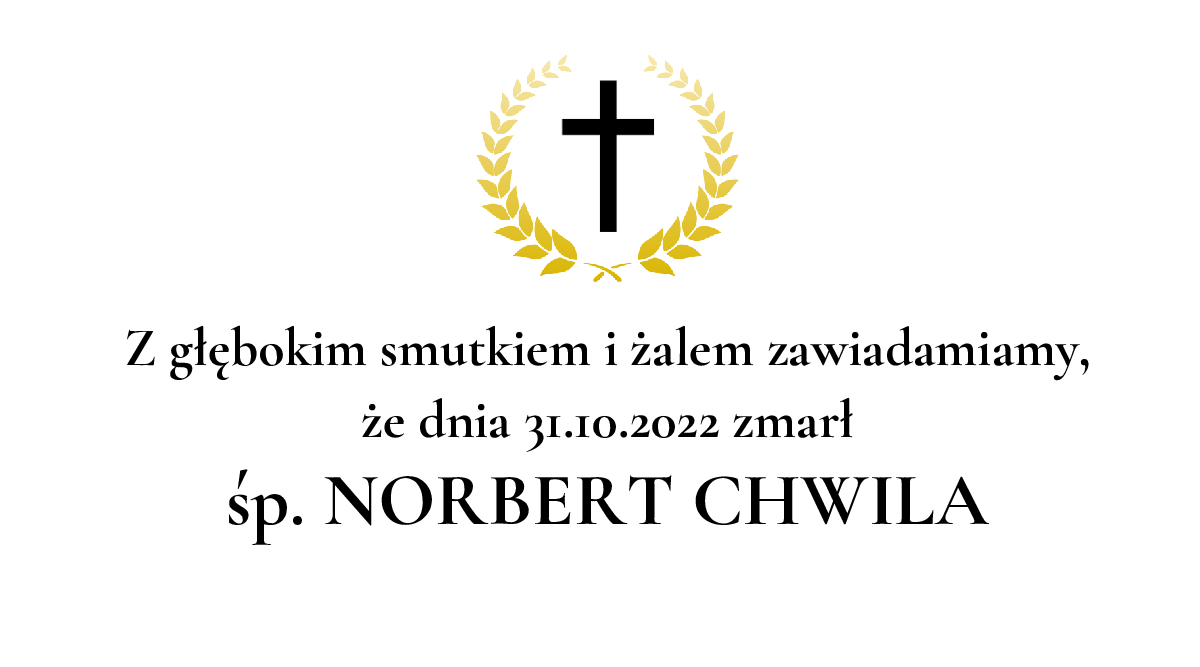 Data pogrzebu: 07.11.2022 Msza Święta: 07.11.2022 o godz. 11:30 Kaplica cmentarna w Katowicach ul. Murckowska 9 Katowice, ul. Murckowska 9 Wyprowadzenie do grobu o godz. 12:15 Cmentarz: Cmentarz komunalny w Katowicach ul. Murckowska 9 Katowice, ul. Murckiowska 9